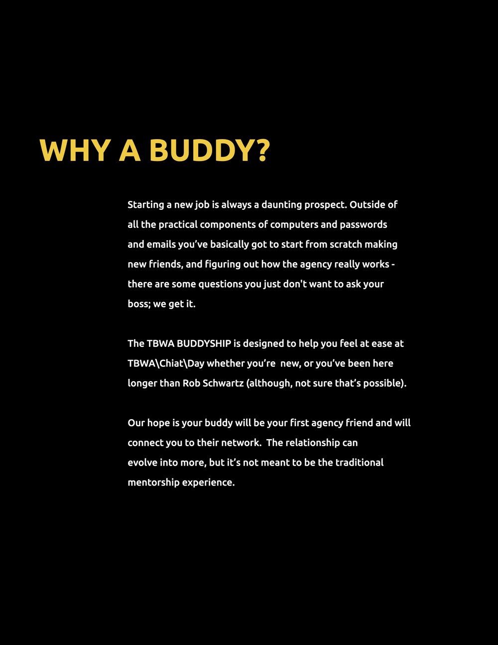 At TBWA Chiat Day NY, I was in the new business department — tasked with creating designs or layouts for various projects. For Raytheon, some of the asks were to make an employee brochure, posters, and social media animation storyboards. For Biogen, I was created health brochures about the patients’ stories on how the drug helped with memory loss due to Alzheimer’s. Lastly for TBWA itself, I created a logo design for their New Buddy program for new hires. It is meant to symbolize that although they were pirates, they still looked out for the new recruits.